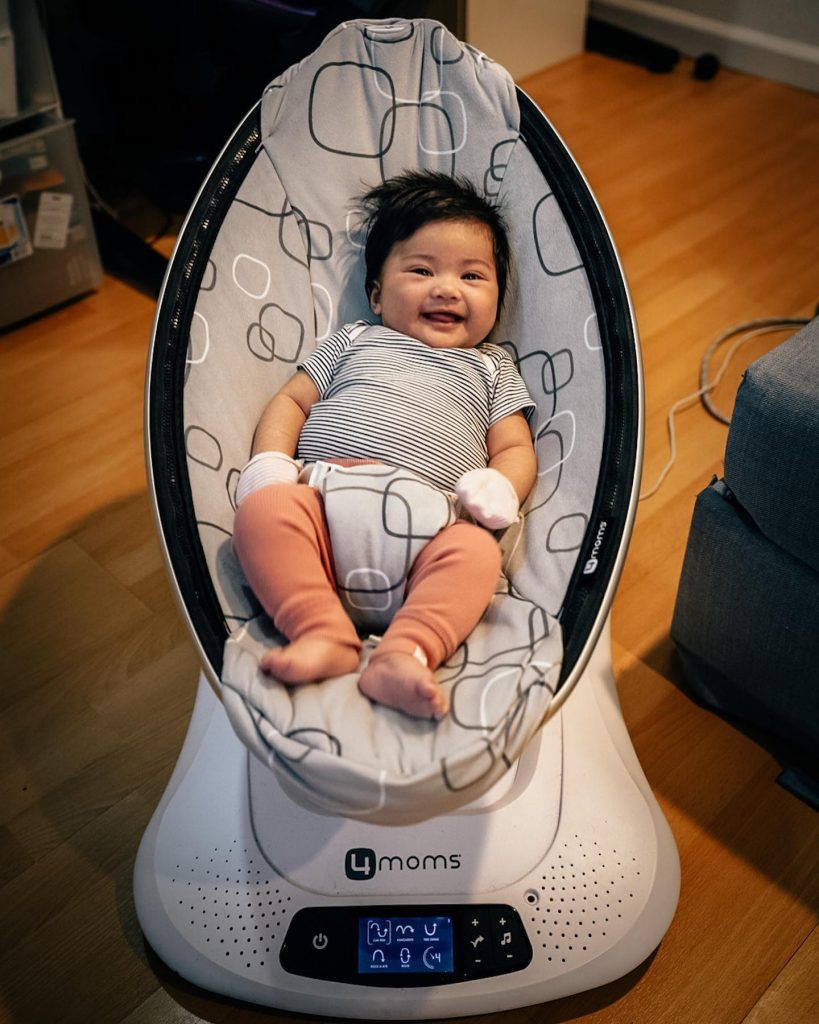 "Eu aluguei o Mamaroo para minha esposa como um presente de aniversário e ela adorou. Ela usa todos os dias e diz que é a coisa mais útil que temos para o nosso bebê.".